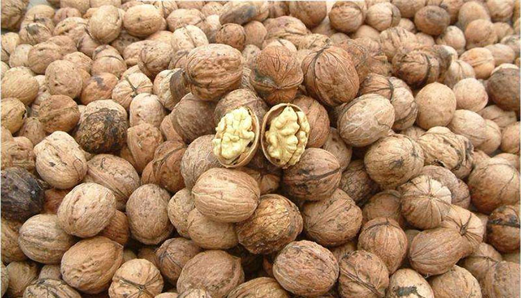 脫青皮后8小時(shí)內(nèi)入倉(cāng)上架排濕烘烤,排濕溫度35-40℃,烘烤時(shí)間12-15小時(shí),果殼表面水分散失,顏色由黑褐轉(zhuǎn)為褐色時(shí)排濕結(jié)束。